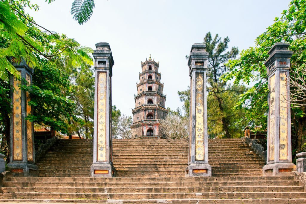 • Đến chùa Thiên Mụ quý khách ghé thăm ngọn tháp Phước Duyên hình bát giác cao 20m gồm 7 tầng và nghe câu chuyện li kỳ về lời nguyền chùa Thiên Mụ do hướng dẫn viên kể.